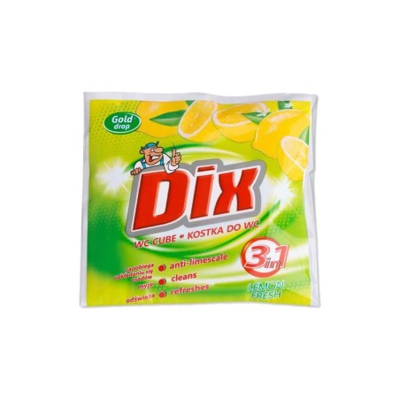 GOLD DROP DIX Kostki do WC to niezawodne rozwiązanie do utrzymania czystości, świeżości i higieny w toalecie. Dzięki zaawansowanej formule, kostka skutecznie zapobiega odkładaniu się kamienia i osadów, zapewniając nieskazitelną czystość muszli klozetowej i długotrwałą ochronę przed zabrudzeniami. Obfita piana dokładnie pokrywa wnętrze toalety przy każdym spłukaniu, eliminując bakterie, osady i neutralizując nieprzyjemne zapachy. Kostki DIX pozostawiają intensywny, odświeżający aromat, który utrzymuje się przez długi czas, nadając łazience uczucie świeżości. Ich wygodna forma sprawia, że aplikacja jest szybka i prosta, a efekty działania są widoczne już po pierwszym użyciu, co czyni je doskonałym wyborem zarówno do domowych łazienek, jak i obiektów użyteczności publicznej.